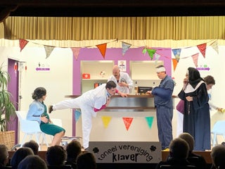 De van bankroof verdachte Arie van Zanten, op de vlucht voor de politie, rent in paniek het eerste gebouw binnen dat hij tegenkomt. Uit een kast pakt hij een witte jas en witte broek en trekt dit aan. Als hij het gebouw wil verlaten loopt hij hoofdzuster Gerda tegen het lijf, die in de veronderstelling is dat de plaatsvervangend arts, dokter van Vliet is gearriveerd. Aangezien er voortdurend politieauto's in de buurt rondrijden, blijft er voor Arie niets anders over dan "DOKTERTJE SPELEN" met alle verwarde gevolgen van dien.